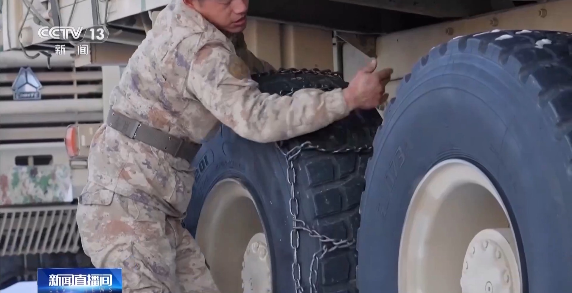 按照车辆指挥员的命令,驾驶员立即在车辆上安装了防滑装置,以增加胎面与地面的接触面积,增加摩擦力,确保行车安全。