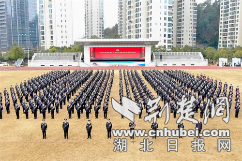 新京报(湖北日报)(通讯员 赵伟)警旗升起,宣誓。 1月10日,在第六个中国人民警察日到来之际,湖北省十堰市公安局举办了系列庆祝活动。千余名辅助民警、退休民警、家属代表齐聚一堂,高举警旗,保持传统,奋力发声,共同庆祝公安队伍的光荣节日。